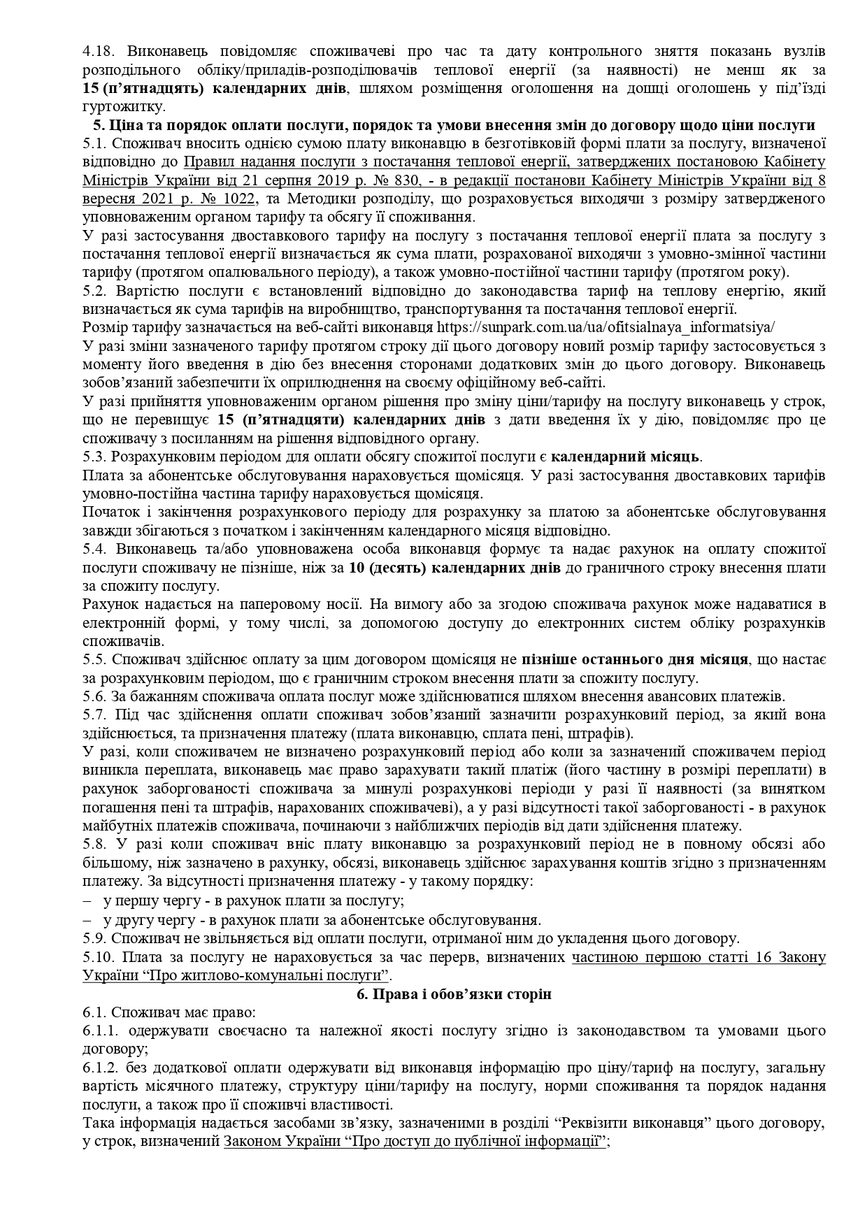 - послугу з централізованого опалення, що надає ТОВ «САН ПАРК» (зареєстровано 24.11.2016р. в ГТУЮ у місті Києві за №241/1557):