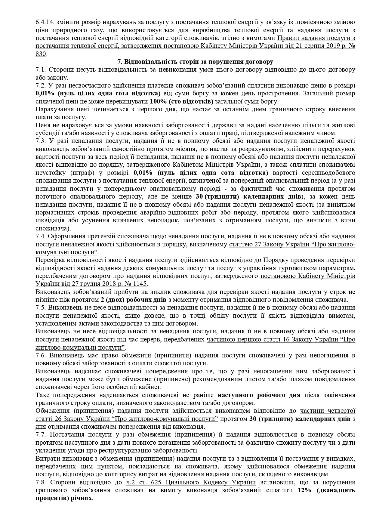 | 1 | Централізоване опалення у разі наявності квартирного (на приміщення) та/або будинкового засобів обліку теплової енергії, яка використовується на опалення: | ||